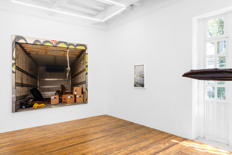Themes of manufacturing and industry, latent in the first metro seats, arrive with full force in vander Borght's photography. Large-format, high-resolution images of industrial spaces and commercial infrastructure create the illusion of the gallery space extending outward––a vacant truck bed littered with remnants, an empty elevator where a cleaning woman pauses as if caught mid-duty. These are transient spaces built for transporting goods and individuals. Whether elevators, trucks, subways, or chrysalises, the world of Charlotte vander Borght is one of perpetual transformation.
