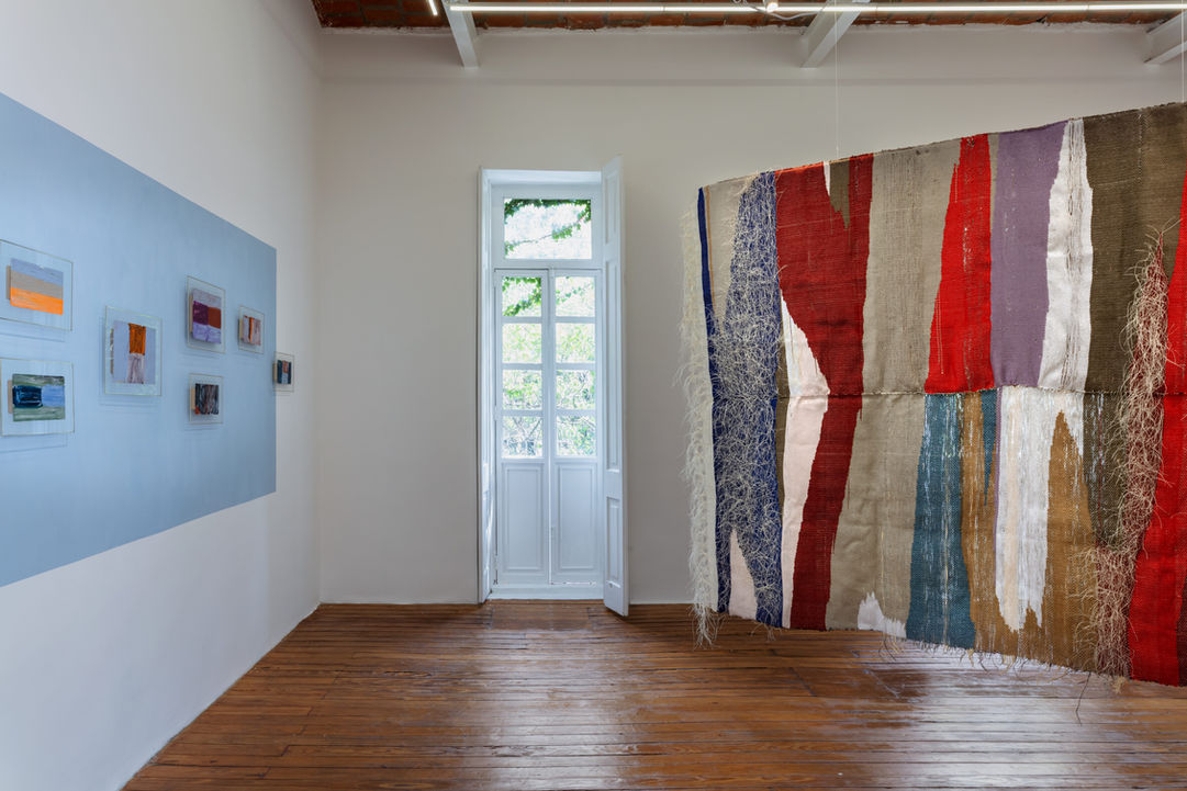 Weaving, for Marie Hazard, is not merely about producing a decorative surface: it is about building a place. Every stretched, knotted, twisted thread, every chosen material, every repeated gesture is a way of inhabiting space, of patiently constructing it on the loom, with the strength of arms and legs. The textile thus becomes architecture—a flexible, mobile, intimate architecture—a language of construction, a medium capable of structuring a space while letting it breathe. By questioning the autonomy of the work and its subordination to the wall, the artist embarks for the first time in this exhibition on conceptual explorations of three-dimensionality. Her pieces detach from the wall to assert themselves in space: they become panels, columns, buttresses, portals. The aim here is not to construct closed spaces, but to open, create passages, porous thresholds that invite passage. For it is in the concrete and symbolic construction of a space of one’s own, a place of freedom and creation, that Marie Hazard truly engages herself. If a place—in the anthropological sense of the term—is a point of reference for individuals, a site imbued with history and a stage for social relationships, the spaces that Marie Hazard’s works transport us to tend instead to unsettle our certainties. She proposes an entirely different experience: one of solitude, wandering, and personal introspection.