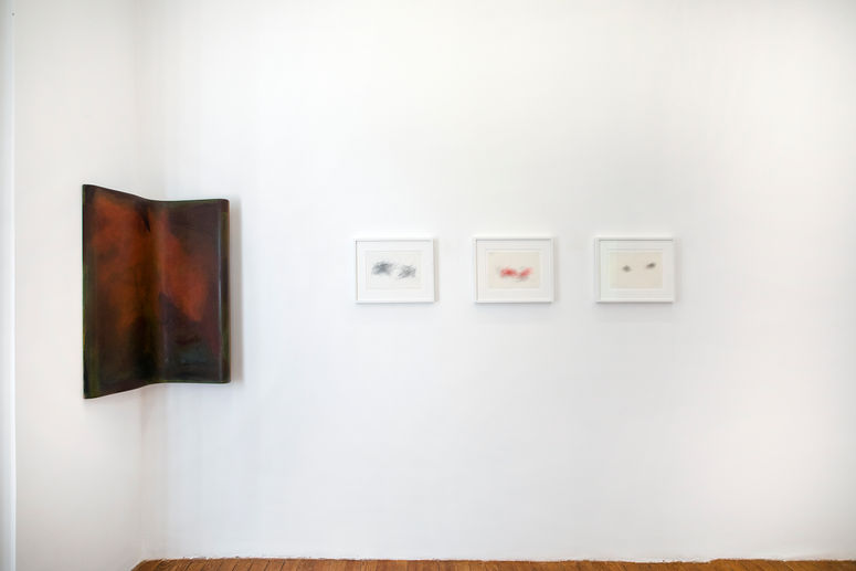 Galería Mascota is pleased to present Planes, Trains & Automobiles a group exhibition featuring works by Marie Hazard, William Anastasi, Alex Hubbard, Charlotte vander Borght, Nicholas Sullivan, Avantgardo and Nicholas Shake. The selection of works focuses on means of transportation; each artist engages in their diverse experience with a transport. Avantgardo, presents a section of the window of an airplane, Charlotte vander Borght’s sculptures are inspired in New York City’s subway seats, a drawing that shows the movement of the road while being accompanied by a friend, or a piece that goes beyond having the function of just being a painting. As for the drawings by William Anastasi, his Subway Drawings series, were made on trips to and from his daily chess games with the experimental music and composer John Cage in the 1970s. With a pencil held in each hand, Anastasi closed his eyes and allowed the vibrations of the train to move the pencils across paper.